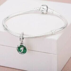 Disney Ariel SS dangle with clear CZ, royal green crystal and green enamel