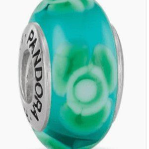 Pandora Authentic 790649 Turquoise Flower Murano Glass and Sterling Silver Retired Charm
