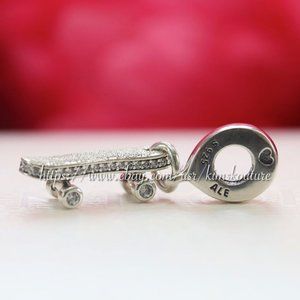 The sterling silver dangle is skillfully set with cubic zirconia and symbolizes the fundamentals of skateboarding - freedom, friendship, and creativity.