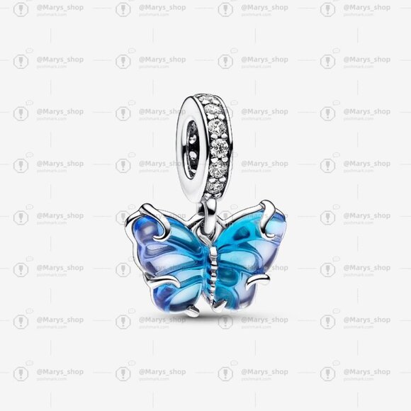 Pandora Blue Murano Glass Butterfly Dangle Charm