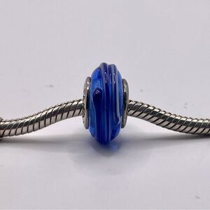 Pandora Blue Ribbon Murano Glass Charm Style 790612 S925 ALE Wide Retired