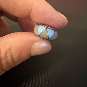 Authentic Pandora Murano glass and ailvwr bead/charm. Blue and gray triangles. Retired design. S925-Ale.
