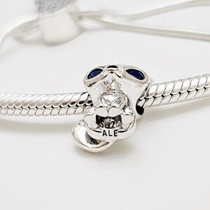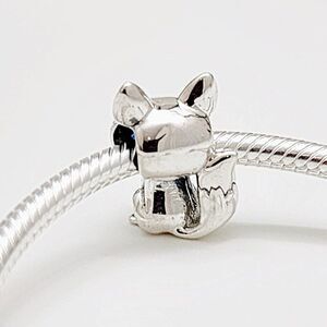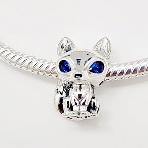Hand-finished in sterling silver, this fox charm has eyes made from two flush-set pear-shaped crystals in brilliant blue.