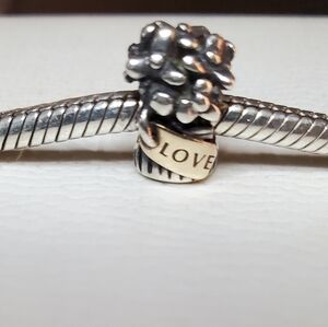 Retired Sterling Silver Flower Bouquet Bead with 14K Gold Love Tag - 790441