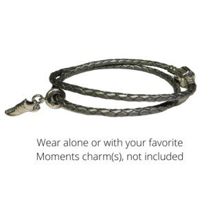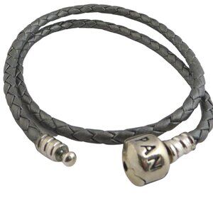 Pandora Braided Leather Silver Grey Charm Bracelet Double Wrap 15" 590705CGY-D