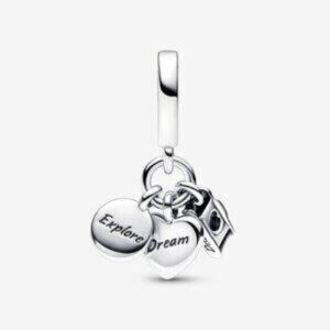 Pandora Camera, Heart & Compass Triple Dangle Charm