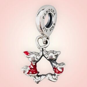 Add some Disney magic to your Pandora bracelet with this charming Mickey and Minnie Mouse Kissing Dangle Charm. Made of .925 silver and enamel, this red-metaled charm is perfect for any fan of the iconic Disney characters. The dangle style adds a playful touch to your jewelry collection, while the absence of any stones on the charm makes it versatile enough to wear with any outfit. This Pandora charm is a must-have for any collector or Disney enthusiast.