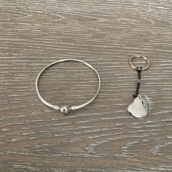 Authentic Pandora Clasp Bangle Bracelet in Sterling Silver. Heart Charm included. Box Included. Size L
