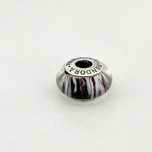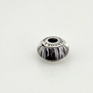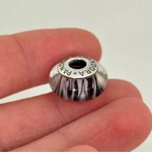 Pandora Dark Purple & White Zebra Stripes Rare Retired Murano Glass Charm