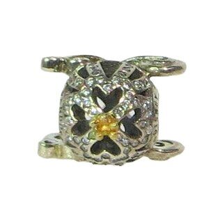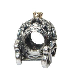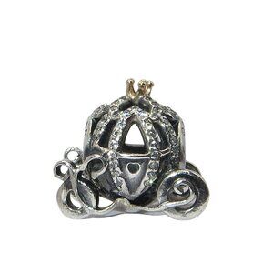 Pandora Disney Cinderella Pumpkin Coach 14k Gold CZ & SS .925 Charm 791573CZ