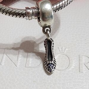 Authentic Pandora Disney, Cinderella Sparkling Slipper Dangle Charm, Fancy Light Blue CZ