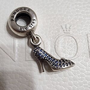 Authentic Pandora Disney, Cinderella Sparkling Slipper Dangle Charm, Fancy Light Blue CZ