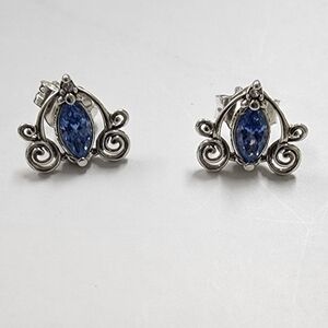 Have a ball every day with the Disney Cinderella's Carriage Stud Earrings. These sterling silver earrings from Disney x Pandora are inspired by Cinderella's enchanted pumpkin carriage, with a blue marquise-shaped stone surrounded by swirling openwork details. A small clear cubic zirconia stone sparkles on the pumpkin stem atop each carriage. The earrings have heart-shaped butterfly backs and are sold as a pair. Style them together with the matching necklace for an elevated Cinderella-inspired look.