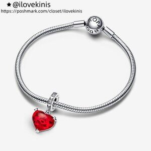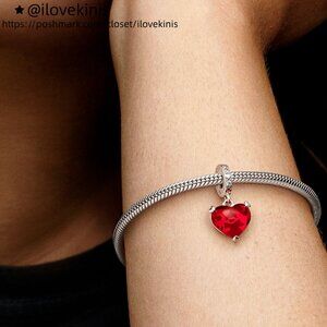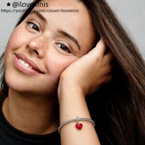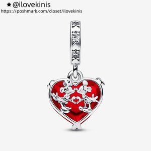 Pandora Disney Mickey & Minnie Mouse Kiss Red Murano Glass Dangle Charm