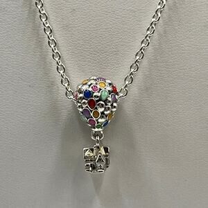 Pandora Disney Pixar Up House & Balloons Charm Sterling silver Chain Necklace 16”