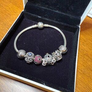 Pandora Disney Theme Bracelet Chain and Charms Set with Box and Pouch