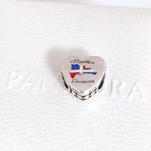 Pandora Dominican Republic Flag Heart Charm Bead S925 Silver with box