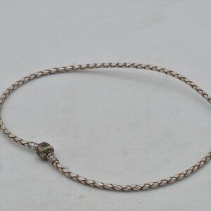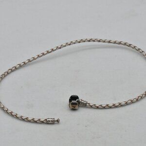 Pandora .925 sterling silver and double wrapped leather bracelet. It measures 15" and will come in a Disney Pandora box that I don't believe was original to this bracelet. Please refer to pictures for additional condition details. Let me know if you have any questions.
