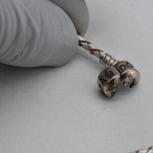 Pandora Double Braided Leather Wrap Bracelet Sterling Silver Authentic 15"