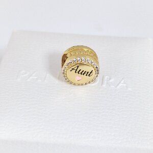 Pandora Engravable Aunt Charm Bead Gold Plated with box