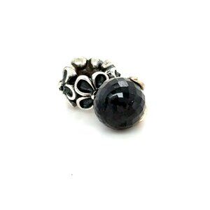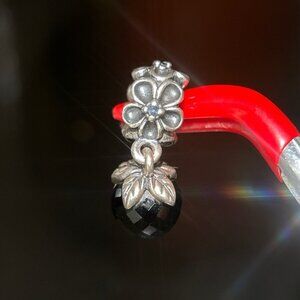 Pandora Flower Onyx Dangle Charm - Rare