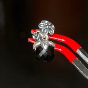 Authentic Pandora Flower Onyx Dangle Charm. Each flower also has alenxandrite stone.