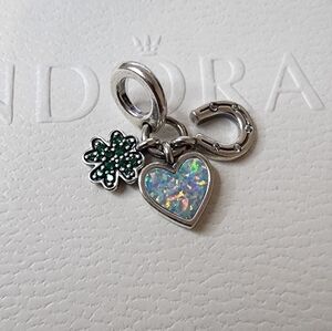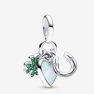 Pandora Four Leaf Clover, Heart and Horseshoe Triple Dangle Charm