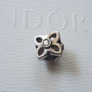 Authentic Four Petal Flower Clear CZ Charm