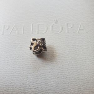 This triangular-shaped bead has a cutout floral design with zirconia center on each of its sides. Great for pairing alongside the several other geometric-style beads Pandora offers.