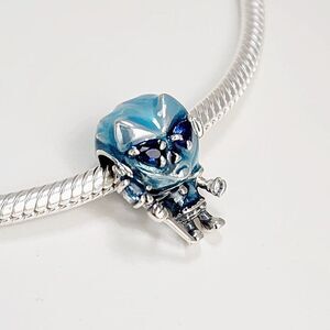 Also has two pear-shaped man-made crystals as eyes and is holding his iconic spear with a sparkling stone top.