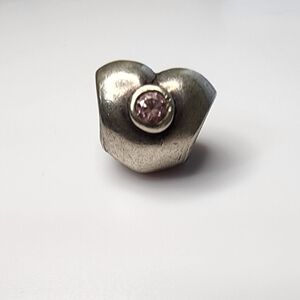 Authentic Pandora Heart Sterling Silver Charm With Pink Cubic Zirconia