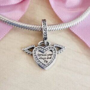 Pandora Heart and Angel Wings Dangle Cubic Zirconia Charm