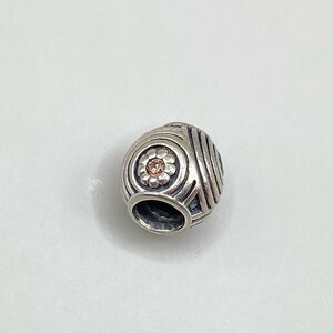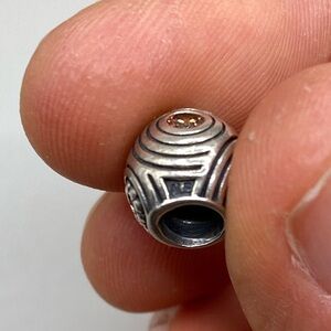 Sterling silver and champagne cubic zirconia, orangish brown color. Good used condition with light wear, stamp and hallmark fully visible, no missing stones.