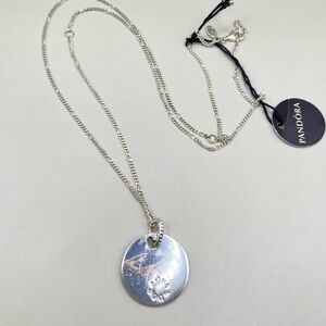 Pandora sterling silver I Love You to the Moon and Back circle pendant necklace. Good used condition, still has the tag but pendant shows some light wear.