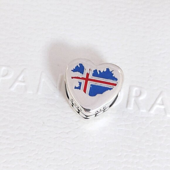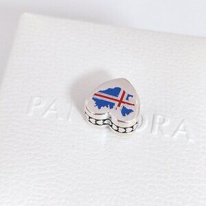 Pandora Iceland Flag Map Heart Charm Bead S925 Silver with box