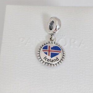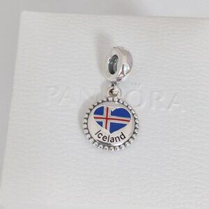 Pandora Iceland Heart Flag Dangle Charm with box