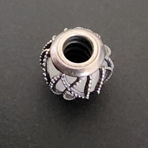 This striking sterling silver charm is comprised of a sparkling cubic zirconia stone encased in shimmering silver strands. It is ideal for introducing rich luminosity and exquisite details to your bracelet.