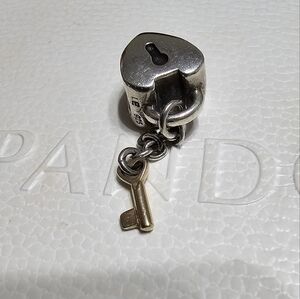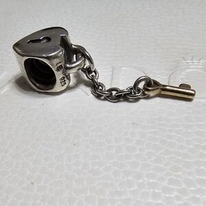 RETIRED Genuine Authentic Pandora Silver & Gold Key Lock Heart Charm
