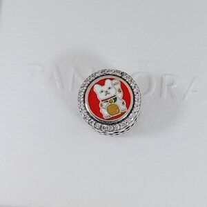 Pandora Lucky Cat Wealth Bead Double-sided Charm S925 Silver Bracelet Pendant