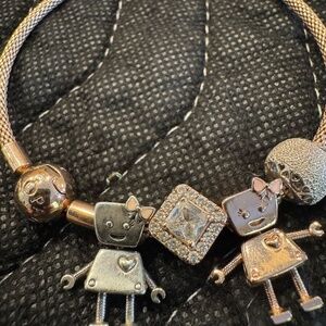 Bracelet is 225, articulated bots $75 each. Other charms $50 each. $475. Purchase all five $415. Authentic Pandora see clasp.