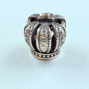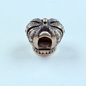 Authentic Pandora three dimensional Regal Crown, a representation of a royal crown. It's often an openwork design with intricate cut outs and details.. Shaped like a classic royal crown, with pointed arches at the top and a band at the bottom.