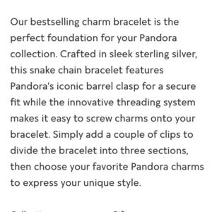 Authentic Pandora charm bracelet - 7.5” would fit 6.7”-7” wrist and holds up to 20 charms - gently worn, light tarnish