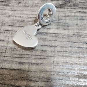 Aurhentic Pandora silver heart charm with 'Mother' engraving. Perfect for bracelets or necklaces.