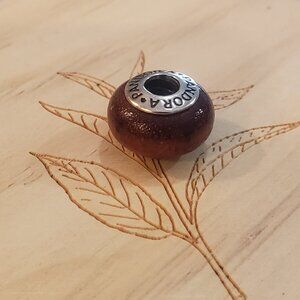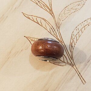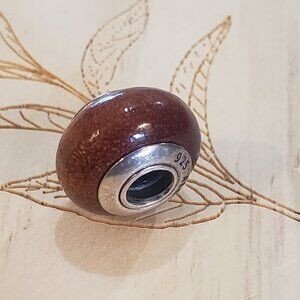 PANDORA Sterling Silver/ Brown Wooden Charm Bead