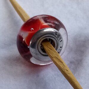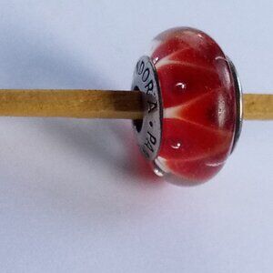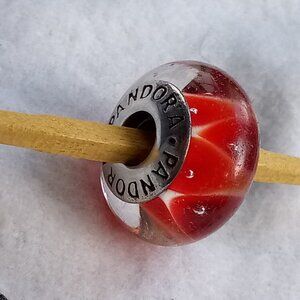 Pandora Murano bead Retired Sterling Silver red Looking Glass Murano