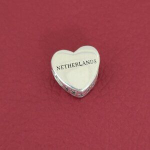 Pandora Netherlands and Tulip Heart Bead Charm S925 Sterling Silver Pendant
