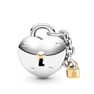 Pandora Pandora Two-Tone Heart & Lock 14K Gold Charm