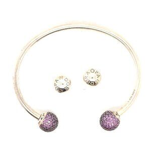Authentic Sterling Silver 925 Pandora Pave Purple Cz /Silver End Balls Moments Cuff.