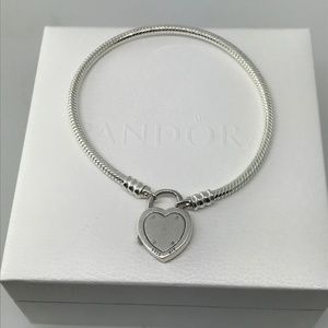 Pandora Pink Heart Padlock Clasp Snake Bracelet