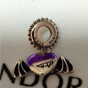 Cute heart-shaped charm with bat wings. Features a vibrant purple color. Perfect for Halloween or gothic style.